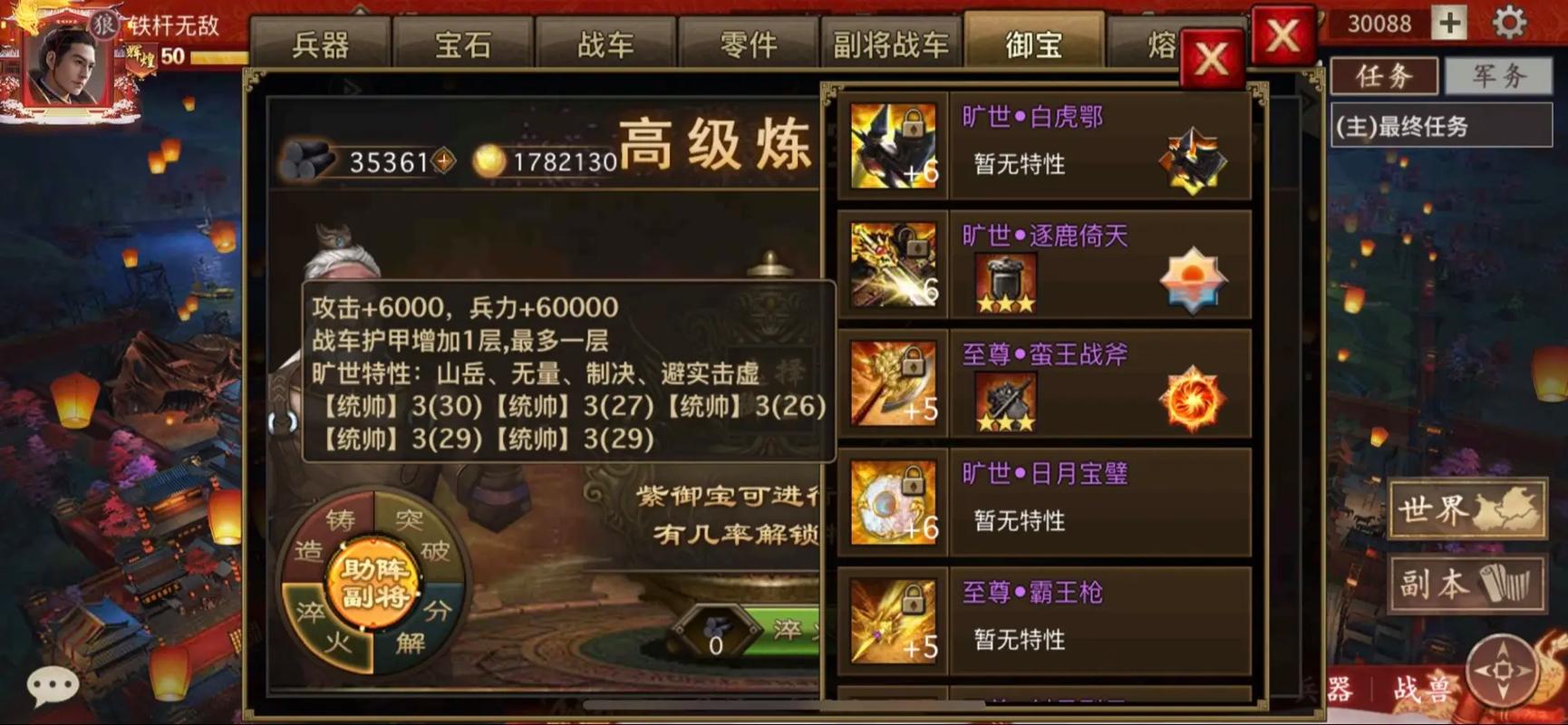 武将阵容的合理搭配与装备的针对性强化,是攻克升级路上各个关卡挑战、减少卡顿时间的关键。在游戏前期,紫装洗炼至3星即可满足需求,不必过度追求完美属性。应注意套装效果对战斗力的显著提升,例如朱雀套装就非常适合太史慈等特定武将。针对87级这个关键节点,副本为水域地形,敌方由88级的典韦带领重兵驻守,因此必须选用适应水域作战的武将。推荐的阵容组合包括甘宁、夏侯惇、马超和许褚,其中甘宁作为首发武将需携带战法装备。在装备配置上,应注重特殊属性搭配,优先将强防和防御属性分配给夏侯惇等承伤武将。